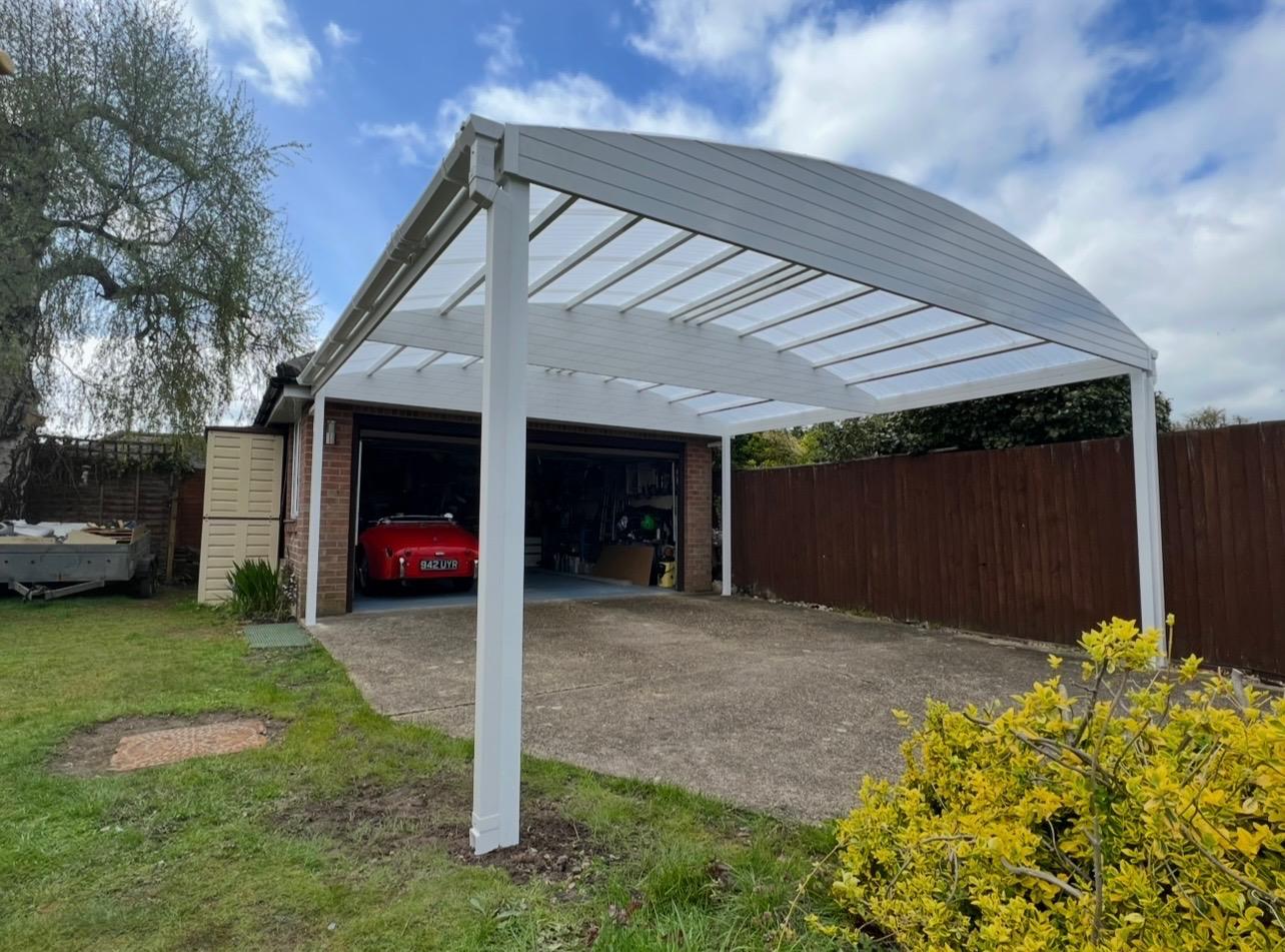 Carports for Hampshire homes and businesses, protecting vehicles, driveways and parking bays with durable aluminium cover.
